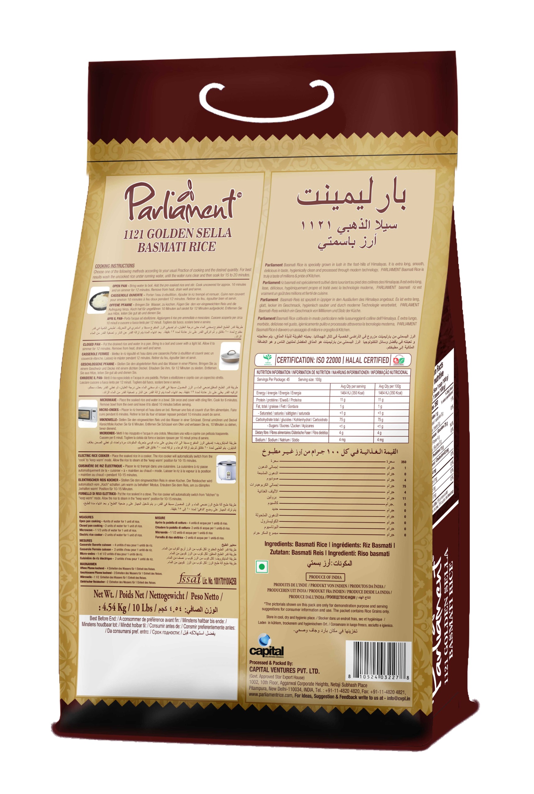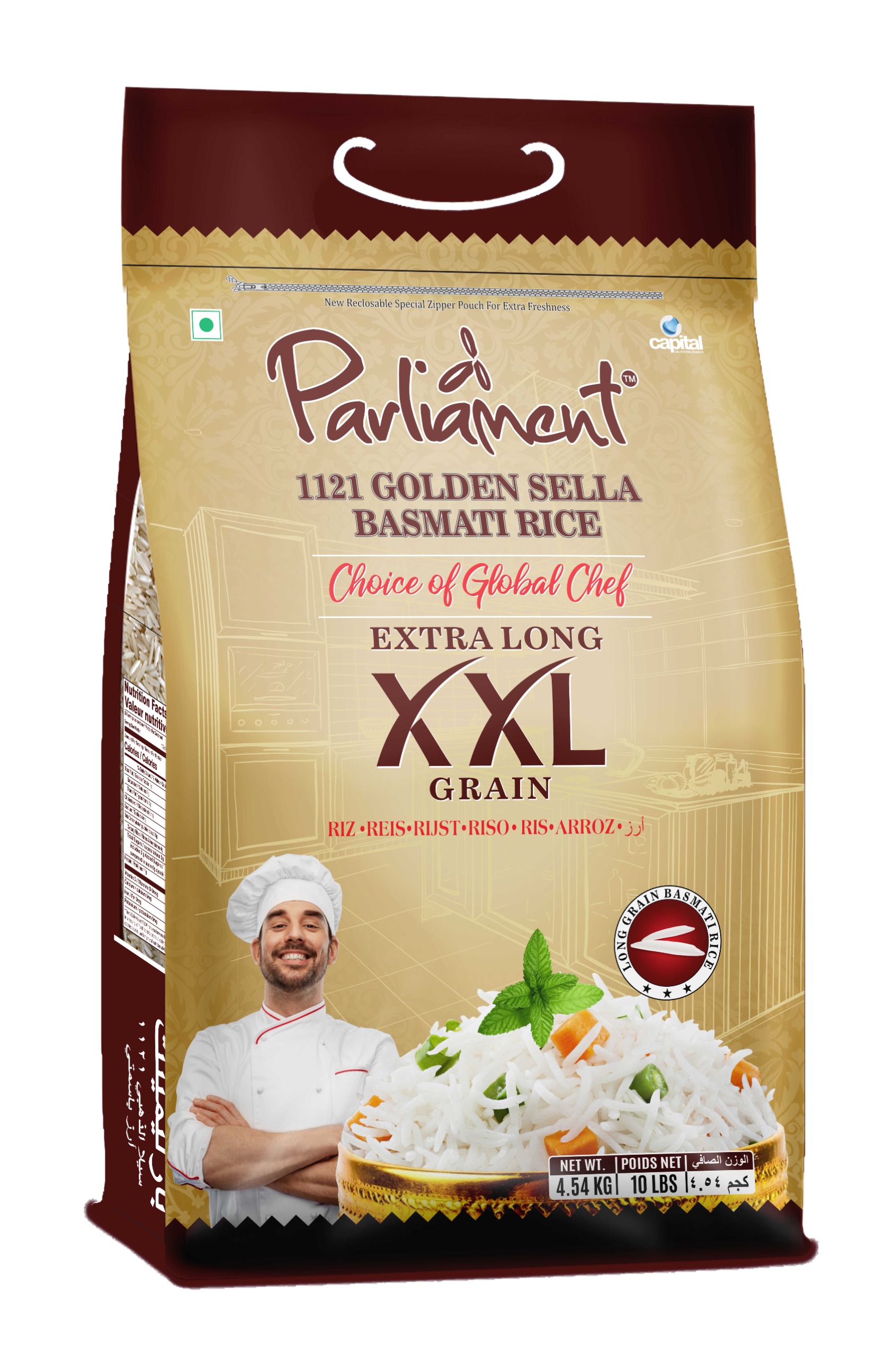 Parliament Golden Sella Rice is 1121 golden sella which is aged for an year. It has high nutritive content and is rich in dietary fiber, making it a good source of carbohydrates. The grains are lustrous and long thus making it ideal for cooking tasty biryani.